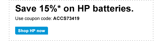 * Valid for HP Direct (hpdirect.com) internet and call center purchases only. Coupon valid while supplies last. Any unused portion will be forfeited. Each coupon code is limited to one usage per customer; one coupon code per checkout. Offer void where prohibited, taxed or restricted by law. Non-transferable. Not valid retroactively on previously purchased items. Not valid for any resale activity as defined by HP Direct. Coupons may not be used to purchase gift cards. Products and support acquired by Customer under these Terms are solely for Customer's personal use and not for immediate resale or sub-licensing. Not valid on: Personal Media drives, Pocket Media drives, SimpleSave drives, MediaSmart Servers and all non-HP brands. Offer is combinable with Instant Rebates. For complete coupon conditions, see "Coupon Information" in the "Customer Service" section at www.hpdirect.com. If you no longer want to receive the HP Home & Home Office Store emails, please click unsubscribe. To unsubscribe from all marketing emails from HP, including HP Home & Home Office Store, special offers and information, please reply with "UNSUBSCRIBE" as the subject line. For more information about HP privacy practices, read the online privacy statement. To ensure you receive your HP Home & Home Office Store offers, please add news@mail.hpshopping.com to your address book. Need help? Click here. We try hard to make sure all of the information in our email is correct, but sometimes mistakes do happen. HP Home & Home Office Store is not responsible for typographical errors. HP Home & Home Office Store: 10955 Tantau Avenue, MS4330, Cupertino, CA 95014 |