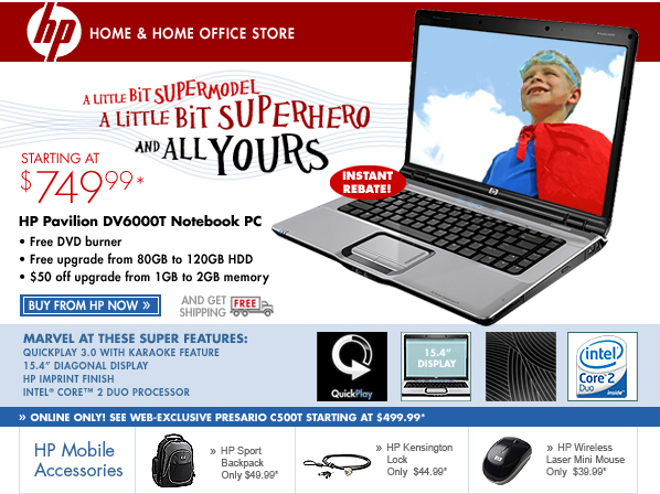 See all notebooks See all desktops See all iPAQs See all printers See all ink & toner See all digital cameras See all TVs See the outlet store See all products