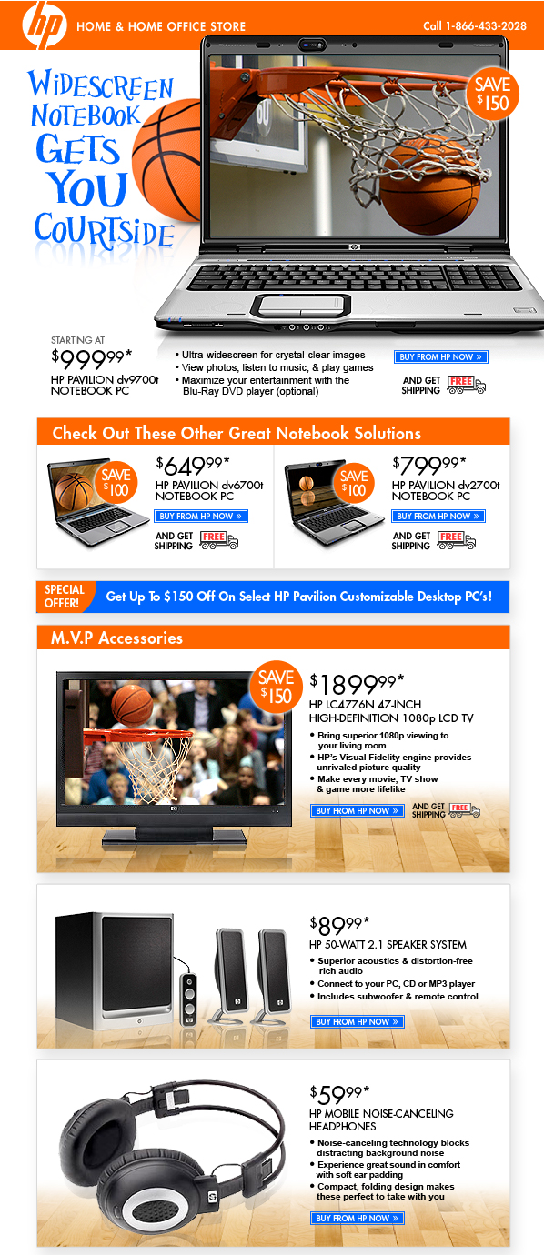 We only send to valued customers who have asked to receive HP Home & Home Office Store e-mail. This is a recurring mailing. To unsubscribe, click here or hit "REPLY" and type "UNSUBSCRIBE" as the subject line of this message. To change your e-mail address, click here.