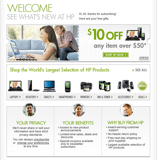 * Offer is good while supplies last. Offer is also subject to change or cancellation at any time. See product page for details. Prices shown may include applicable instant savings. Restrictions apply to sale items and are subject to change without notice. HP Home & Home Office Store is committed to protecting your privacy and respecting your choice for contact. This communication is only sent to valued customers who have asked to receive HP Home & Home Office Store e-mail. This is a recurring mailing. If you no longer want to receive the HP Home & Home Office Store, please click unsubscribe. To unsubscribe from receiving marketing emails from HP including HP Home & Home Office Store, special offers and information, please reply with "UNSUBSCRIBE" as the subject line. To change your e-mail address, click here. For more information about HP privacy practices, read the online privacy statement. To ensure you receive your HP Home & Home Office Store offers, please add news@mail.hpshopping.com to your address book. Need help? Click here. We try hard to make sure all of the information in our email is correct, but sometimes mistakes do happen.Ê HP Home & Home Office Store is not responsible for typographical errors. HP Home & Home Office Store: 1501 Page Mill Road, Bldg 5U, MS1407, Palo Alto, CA 94304 |