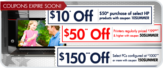***$150 Coupon is valid through 7/6/2011 or while supplies last. Purchase must be $1000 or more (before taxes & shipping). Valid for HP Direct (hpdirect.com) internet and call center purchases only. Coupon valid while supplies last. Any unused portion will be forfeited. Each coupon code is limited to one usage per customer; one coupon code per checkout. Offer void where prohibited, taxed or restricted by law. Non-transferable. Not valid retroactively on previously purchased items. Not valid for any resale activity as defined by HP Direct. Coupons may not be used to purchase gift cards. May not be permitted with certain bundle offers. Products and support acquired by Customer under these Terms are solely for Customer's personal use and not for immediate resale or sub-licensing. Not valid on: Friends and Family program, HP Academy and Employee purchase programs, HP Employee Purchase Program, Touchpad FB355UA#ABA and FB359UA#ABA, Refurbished products, HP Services or ENVY 14, ENVY 14 BEATS, or pre-configured PCs. Not valid on purchases from HP download store (hp.digitalriver.com). For complete coupon conditions, see "Coupon Information" in the "Customer Service" section at www.hpdirect.com.