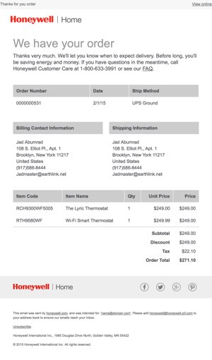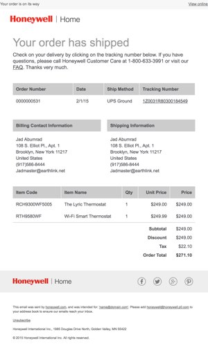 Honeywell Transactional Message