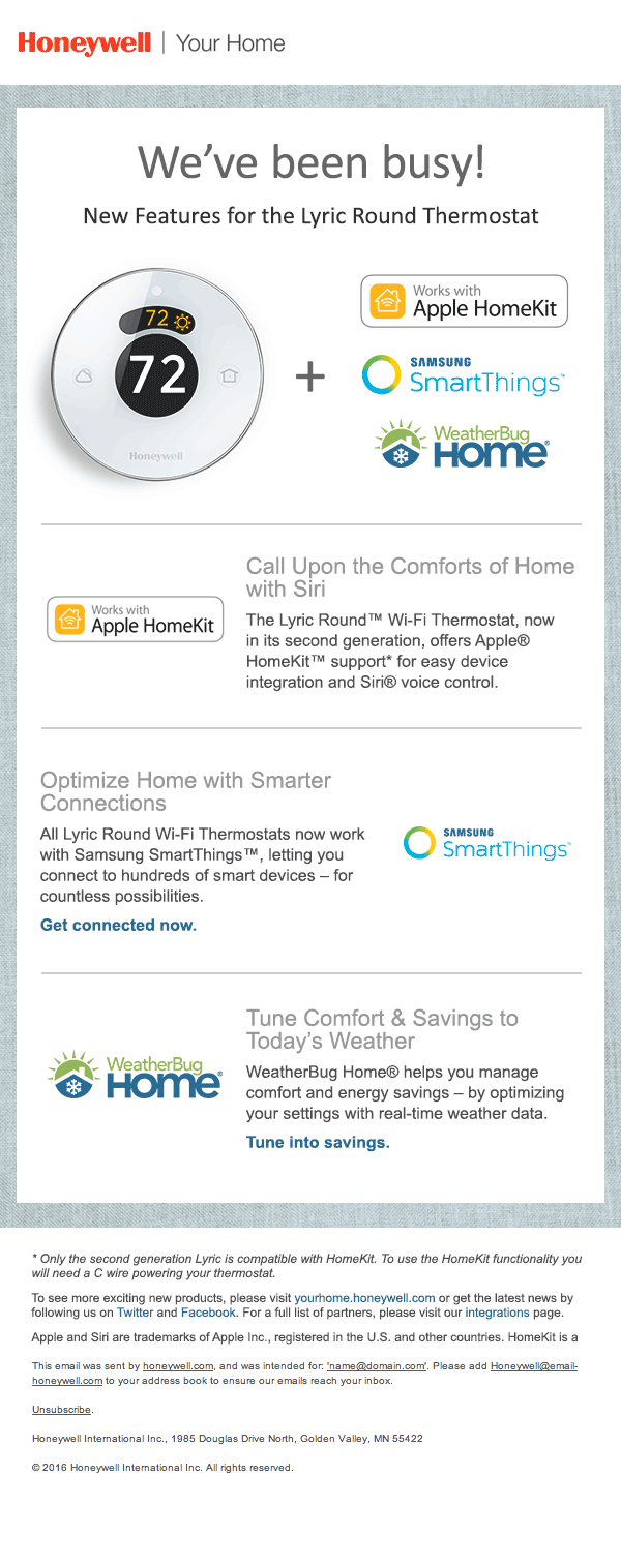 SL - A: New Tools = More Home Comfort SL - B: Home Comfort Just Got (Even) Easier PH: Check out Apple HomeKit, Samsung SmartThings & WeatherBug Home for Lyric thermostat.