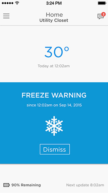 ![]() What maintenance? Simply install, connect, and enjoy peace of mind knowing your WiFi Water Leak and Freeze Detector is maintenance-free. Your app will even send you push notifications when batteries drop below 25%. |