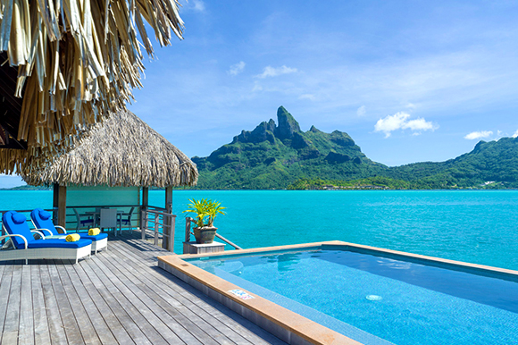 | Stay in the largest overwater villas in the South Pacific and revel in the turquoise blue waters visible through glass panels at the St. Regis® Bora Bora. |