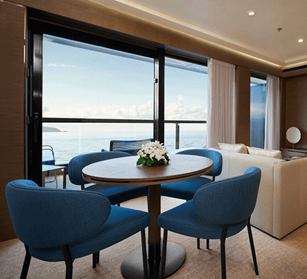 | Accommodating up to 298 guests and boasting 149 suites, experience Evrima, the first of three super yachts from the Ritz-Carlton's eagerly anticipated Yacht Collection to set sail this August. |